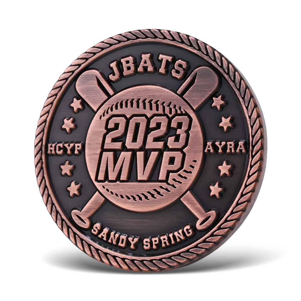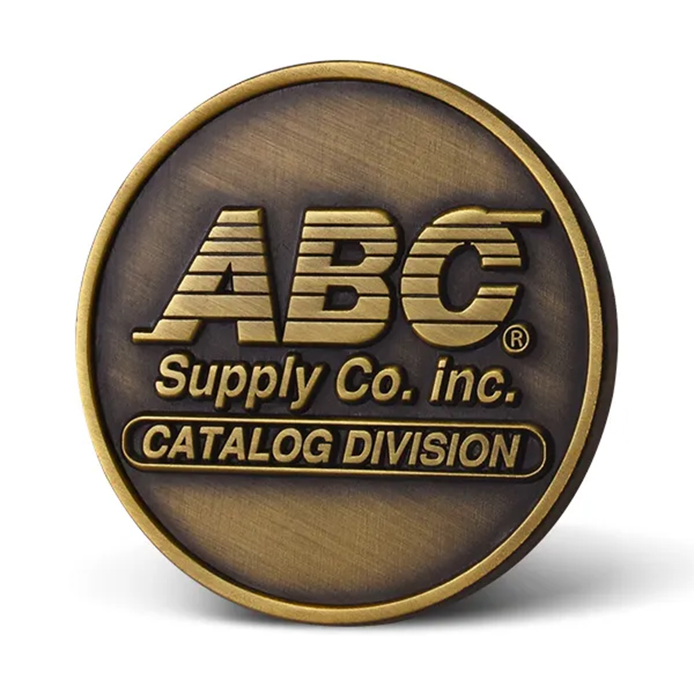 Solid brass challenge coin with finish options: antique brass, silver, or shiny gold, nickel, black nickel, copper. No colors on both sides.