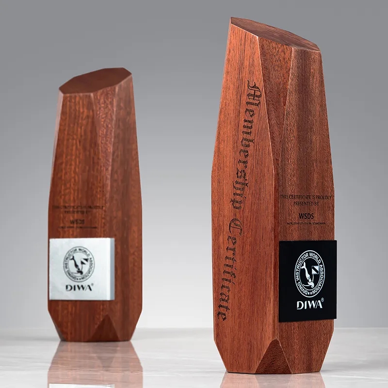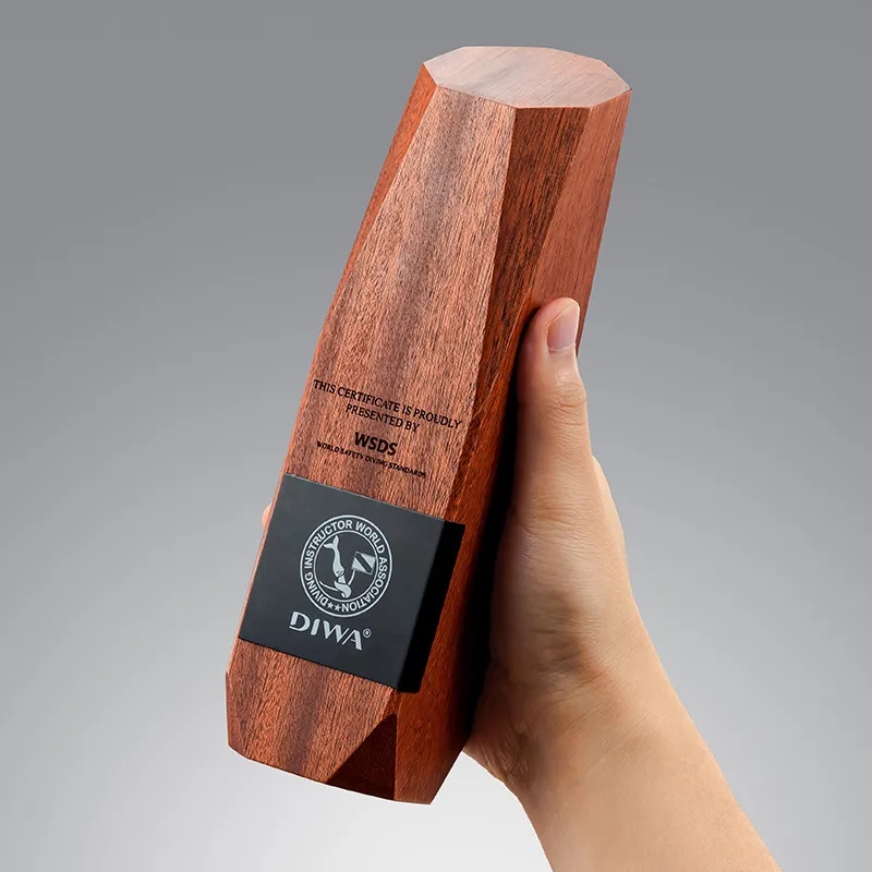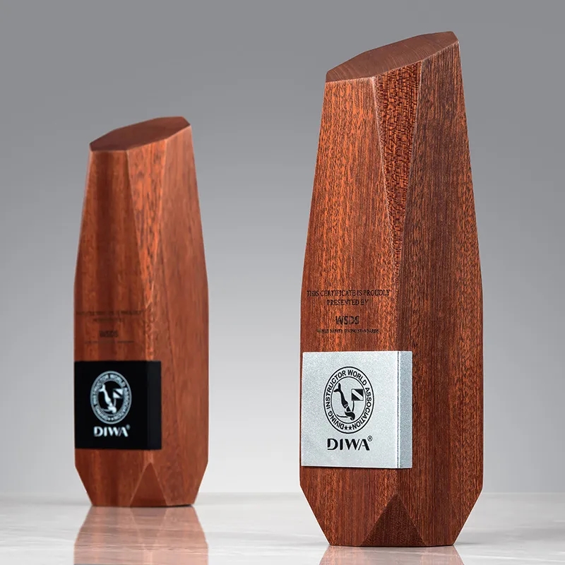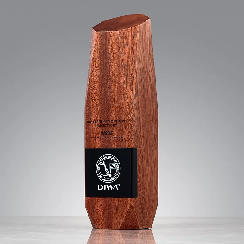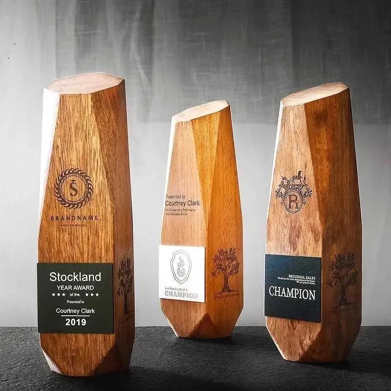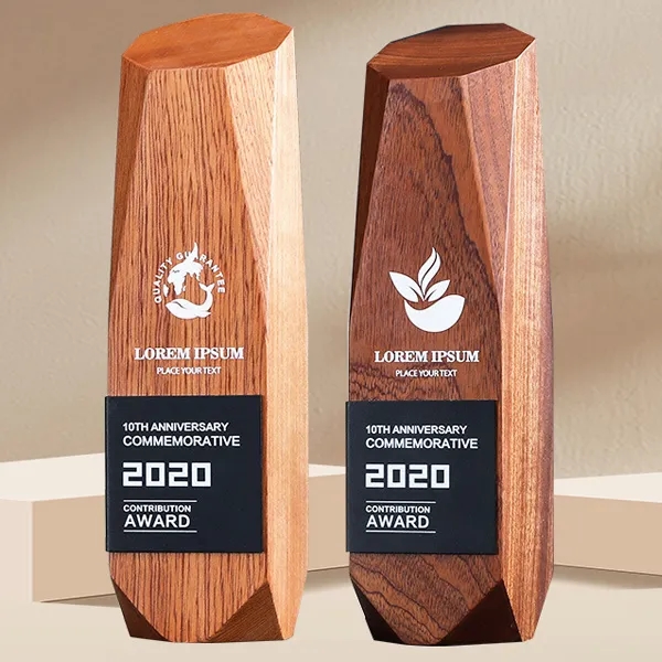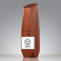 Irregular shaped solid wooden trophy decorated with UV print on front side, sustainable wooden prize for best partner, eco-friendly trophy. Handmade and unique design award for the best employee, business partner, teacher and anyone else you want to pay special attention to.